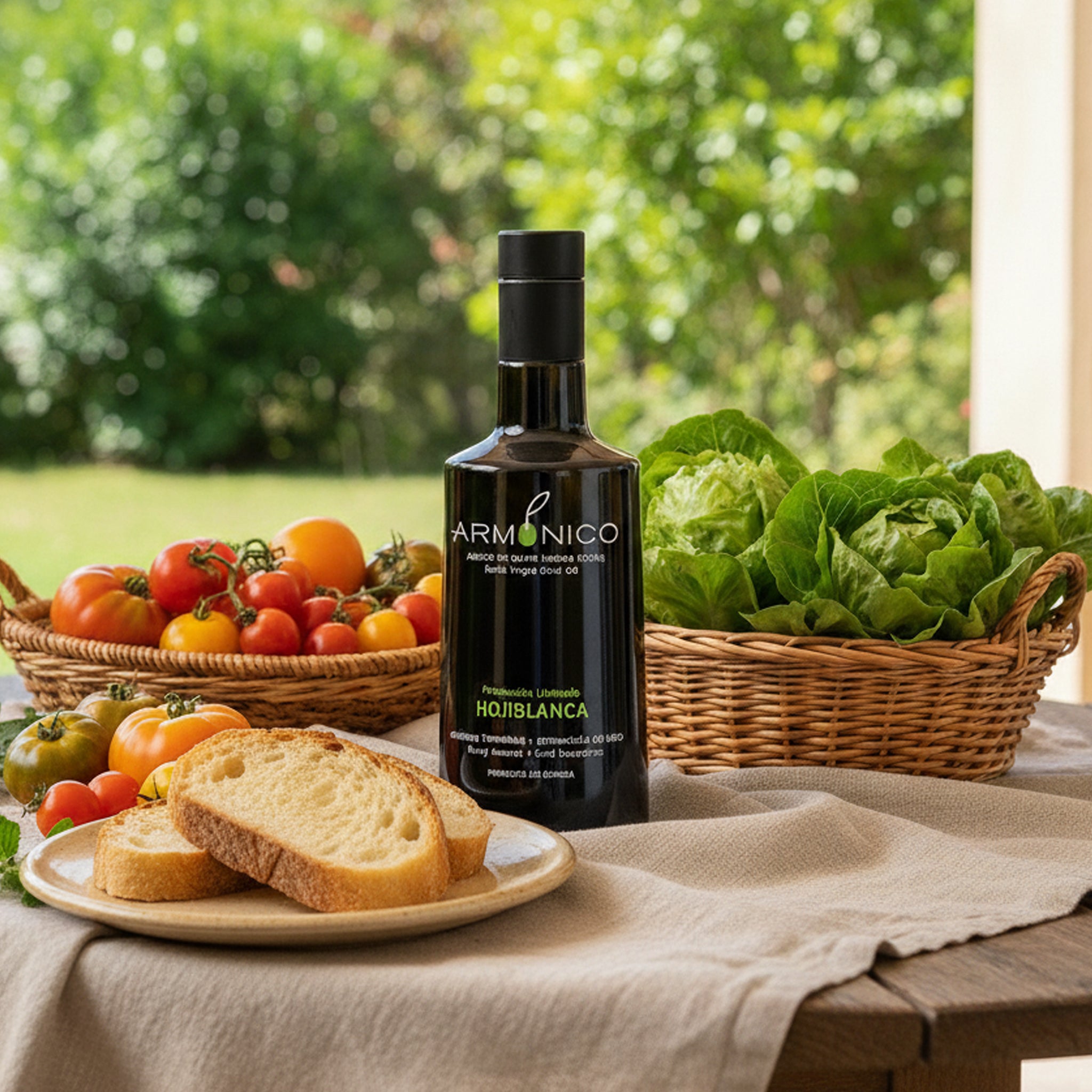 Contenido: 500 ml de AOVE 100% Hojiblanca. Aceite de calidad superior, de Cosecha Temprana y con extracción en frío.